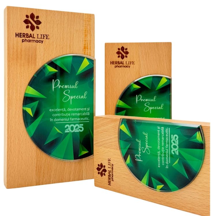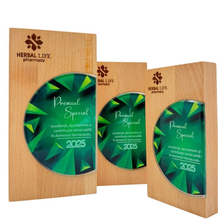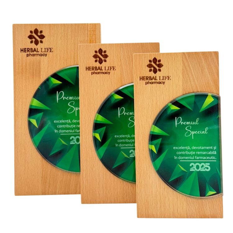 Material Natural de Înaltă Calitate: Trofeul este confecționat din lemn natural, oferind un aspect autentic și calitate durabilă. Acest lucru adaugă o notă distinctivă și rustică, în concordanță cu tema "Nature".
